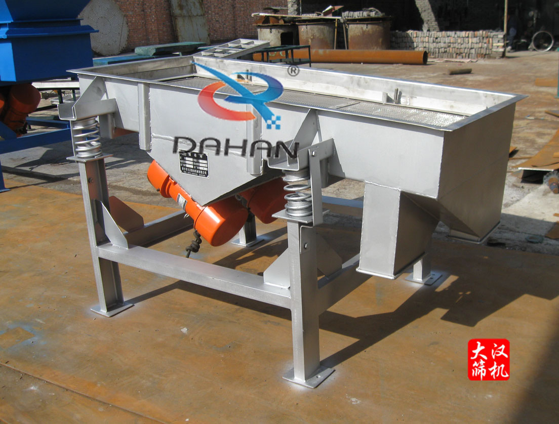 “大漢牌”DZSF-512-1S食品直線振動篩篩面寬為50mm,長1200mm,一層篩網(wǎng)二出口,與物料接觸部材質(zhì)以及直線篩篩網(wǎng)均為304不銹鋼,內(nèi)部打磨拋光,干凈衛(wèi)生,支架以及電機板、導力板為Q235碳鋼材質(zhì),噴防銹漆。